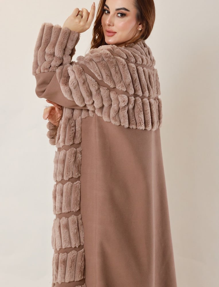 فروه - عباية بتصميم ملكي راقي ومميز من خامة الجوخ ذو جودة عالية مضاف اليها فرو لمزيد من الفخامة والاناقة