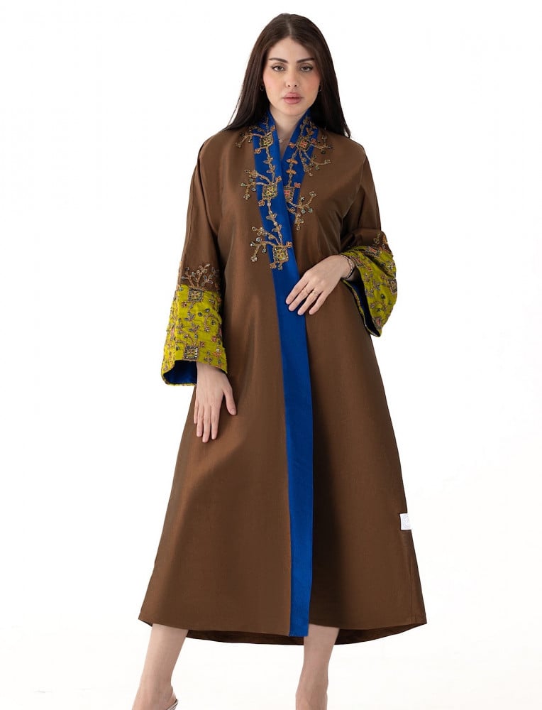 عباية عصرية انيقة مصنوعة من قماش الشنتون