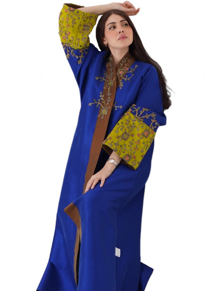 عباية عصرية انيقة مصنوعة من قماش الشنتون مع طرحه